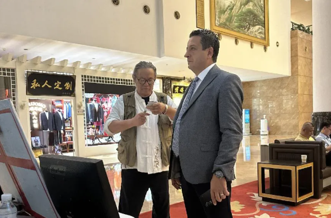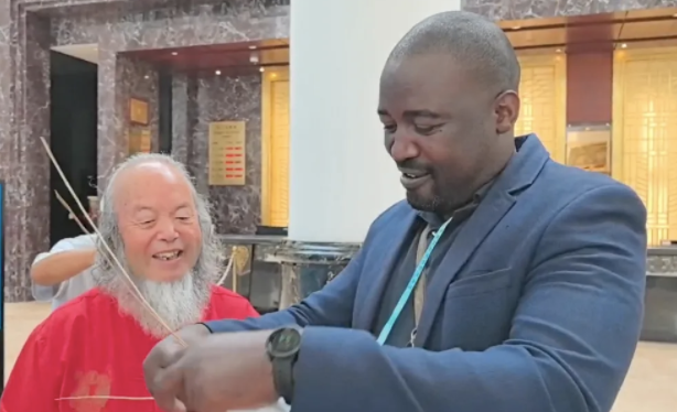 盘扣是传统中国服装起到纽扣作用的附件,能够固定衣襟,是服装的点睛之笔。盘扣传承人王彬将盘扣制作技艺运用在旗袍制作中,让盘扣成为旗袍的点睛之笔,盘扣作品也因旗袍的衬托更为夺目,二者相得益彰。一位来自南非的嘉宾对中国旗袍格外感兴趣,对旗袍的刺绣、盘扣、款式、面料等表示喜爱,考虑定制一件带回家。