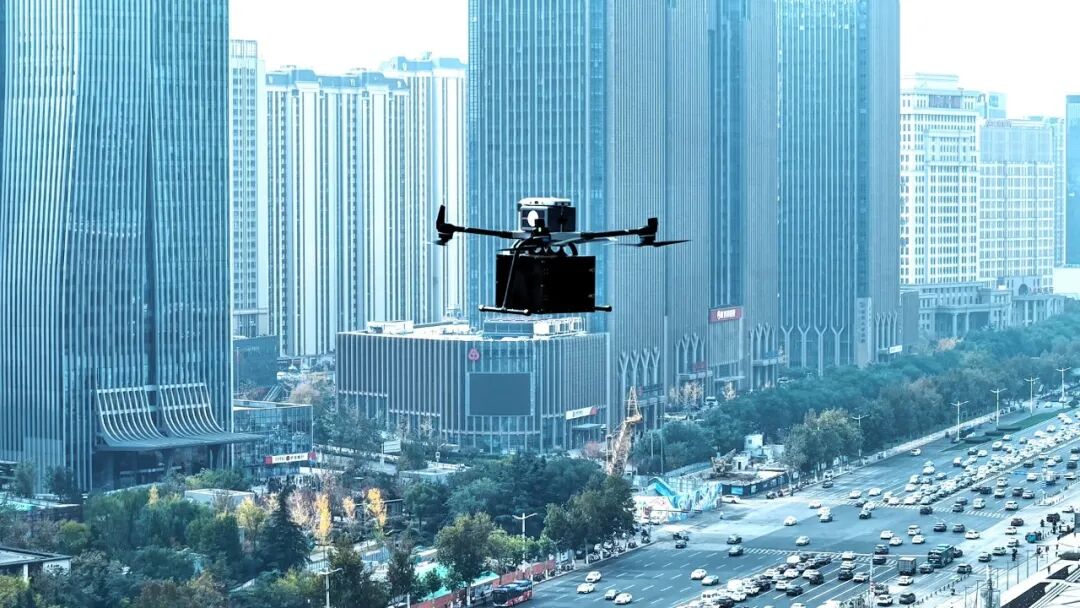 早高峰,一架载重10kg级的无人机,在济南中央商务区(以下简称“CBD”)密集的建筑群中起飞,穿越林立的高楼,仅7分钟就跨越了地面通常需行驶15分钟的2.2公里路程,最终将一份紧急文件精准投递到另一座大楼的停机坪上。